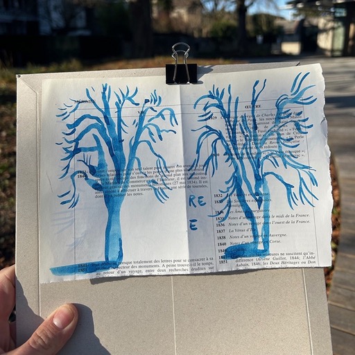 Création d’un mini livre illustré, de la couverture aux pages en passant par une reliure cousue à la main. À l’intérieur, nous recyclerons les feuilles d’anciens ouvrages des bibliothèques pour leur donner une nouvelle vie. Nous dessinerons à l’encre de Chine des arbres, leurs feuilles, leurs fruits, leur écorce et leur silhouette, observés dans le parc du quartier. Une belle occasion de rendre hommage à ces géants qui sont finalement au cœur des pages.