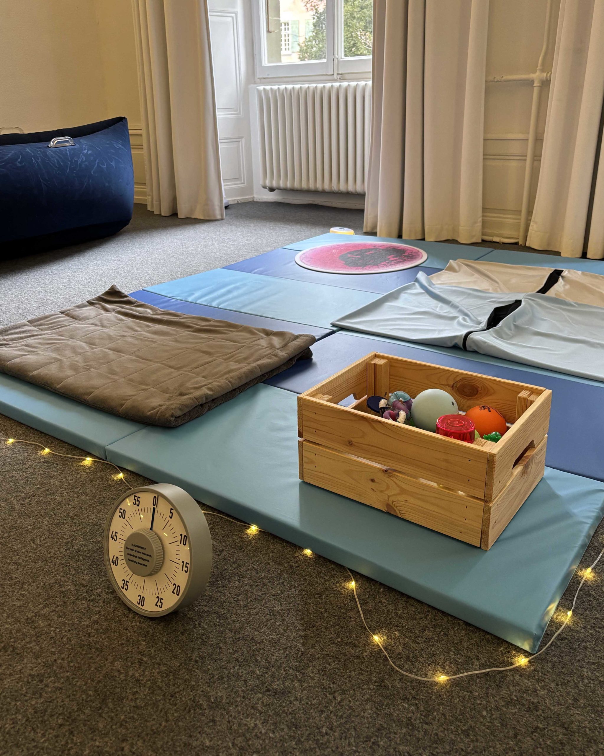 Une partie pratique emmène les enfants à la découverte de différents outils utilisés pour apaiser les personnes concernées. Machine à câlin, tente sensorielle, couverture lestée, objets lumineux… les enfants apprennent l’utilité et l’usage de ces objets, avant d’expérimenter leurs effets sur eux-mêmes.