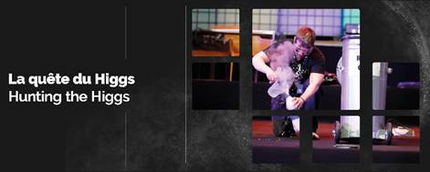 This unique, entertaining, interactive and comical event invites the audience (young and old alike) to follow all the steps of the scientific method in an attempt to discover the famous Higgs boson for themselves.
