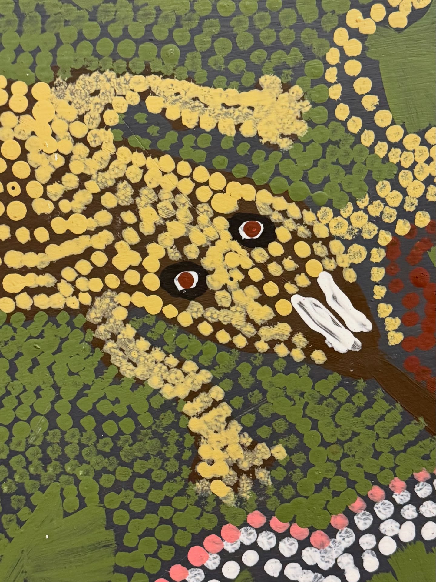 Suivons la piste de Bäru, le crocodile. Ouvrons bien les yeux pour trouver l’Émeu, l’oiseau qui ne sait pas voler et Goanna, le grand lézard. Dans les peintures aborigènes, les animaux laissent des traces: parfois on les voit, d’autres fois elles se cachent entre les lignes et les couleurs.